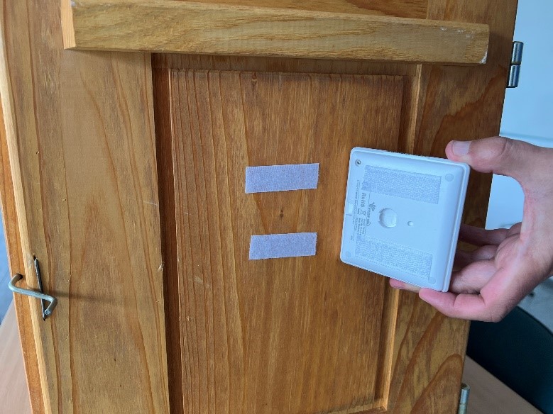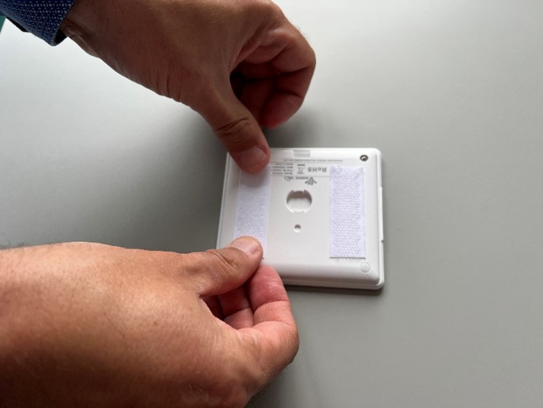 Das Display kann mithilfe der mitgelieferten selbstklebenden Klettbänder am Bienenstock befestigt werden.