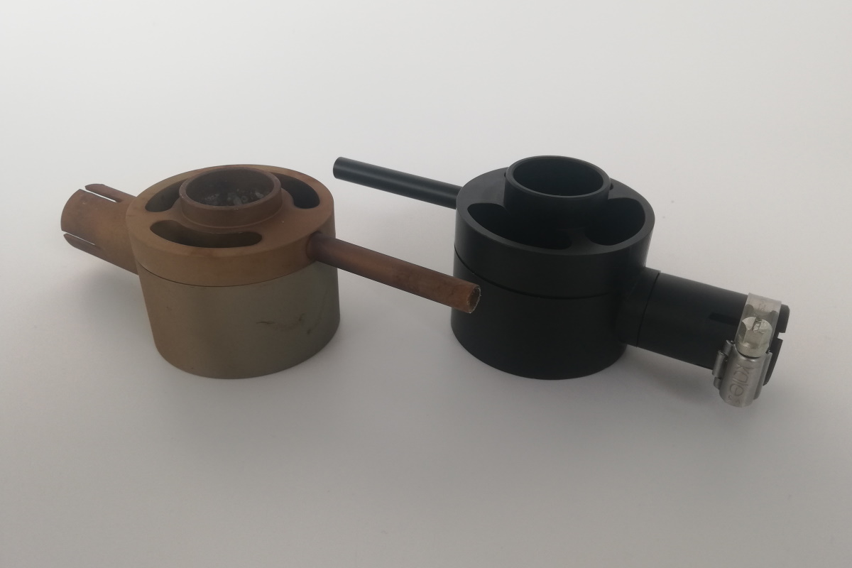 Der Gas Oxalsäureverdampfer ist aus Aluminium gefertigt und schwarz eloxiert. Beim Eloxieren wird die oberste Schicht des Aluminiums in eine Oxidschicht umgewandelt, die einen hervorragenden Schutz gegen Korrosion, Verschleiß und Säuren da bietet. Auf diese Weise schmilzt die Oberfläche beim Erhitzen nicht und es werden keine Gerüche freigesetzt, wie dies bei herkömmlichen Lacken bei solch hohen Temperaturen der Fall ist. Bei diesem Verfahren wechselt die Farbe des Sublimators von Schwarz zu braun-gold. Dies ist zu erwarten und bedeutet nicht, dass mit Ihrem Sublimator etwas nicht in Ordnung ist.