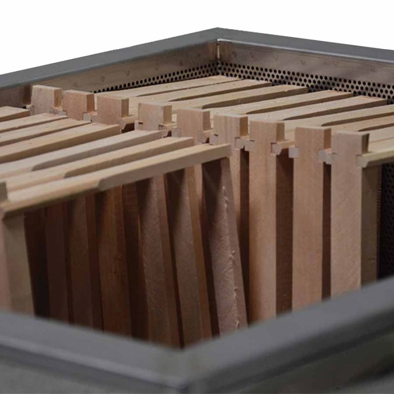Geeignet für: Schmelzen von Altwaben und Entdeckelungswachs sowie Desinfizieren von Rähmchen, Zargen und Imkereigerät. Korbmaß: 60 x 70 x 49 cm (Aufnahme für handelsübliche Rähmchen).